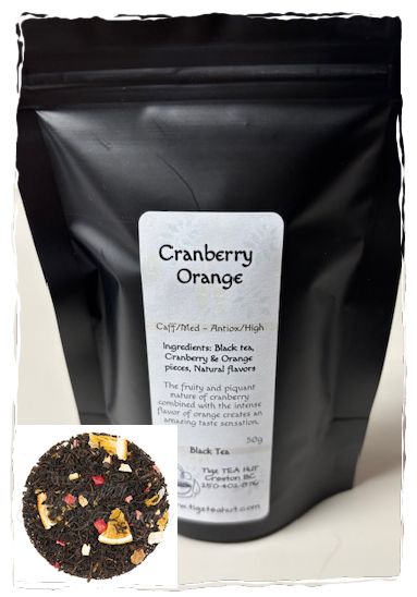 Ingredients: Black tea, Orange + Cranberry pieces, Natural flavors(organic compliant)