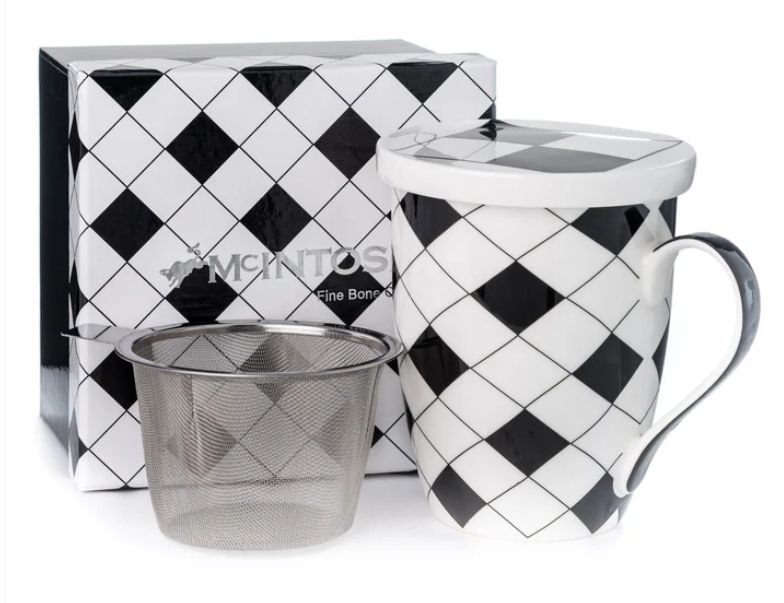 McIntosh Fine Bone China Criss Cross Tea Mug w/infuser
